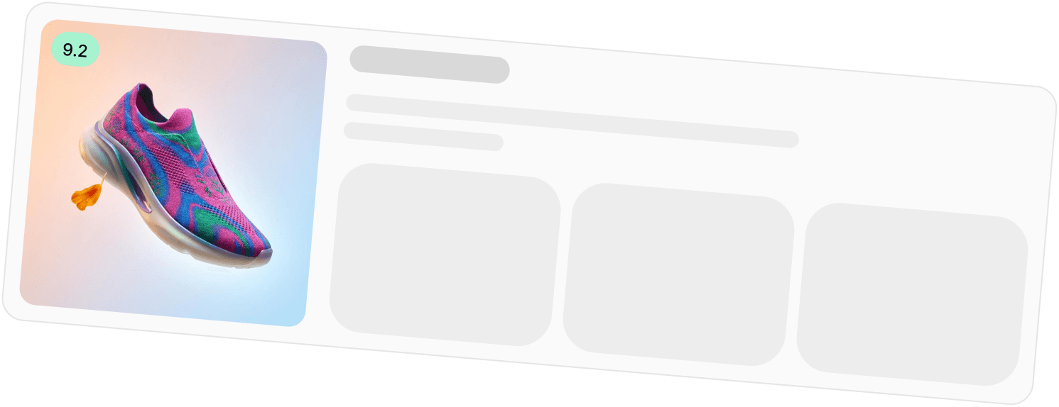 Your asset library gets smart. Quality scoring, performance tracking, auto-organization by SKU, campaign, or channel. Find any asset instantly.